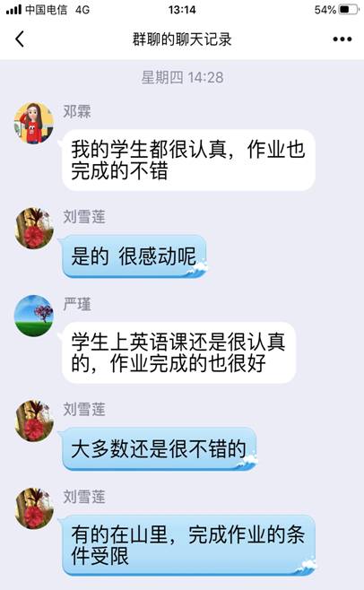 在线英语教学有其自身的局限性,比如,全体师生不能面对面互动,网络有时拥堵不畅,音视频易于卡顿,师生只能键字交流等等。尽管如此种种,绝大部分学生学习态度端正,自觉性和自律性较强,老师们勇于接受挑战,乐于分享交流,相信在线教学能够实现效率效果最大化。本次分享会持续一个半小时,结束之际,大家表示这次会议非常成功,感觉受益匪浅,互相感谢彼此贡献的智慧。