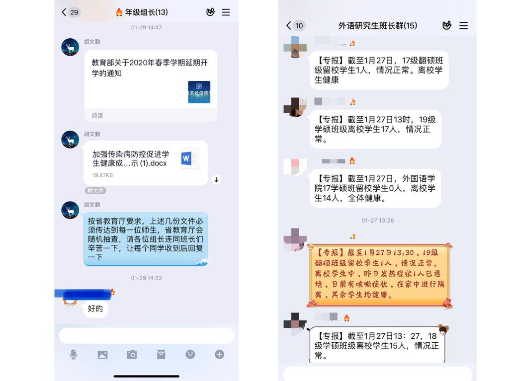 党委的领导下,自1月20日起便积极跟进同学们返乡的情况,并通过QQ、微信、电话等渠道,确保学校相关工作安排、指示及时告知每位同学。