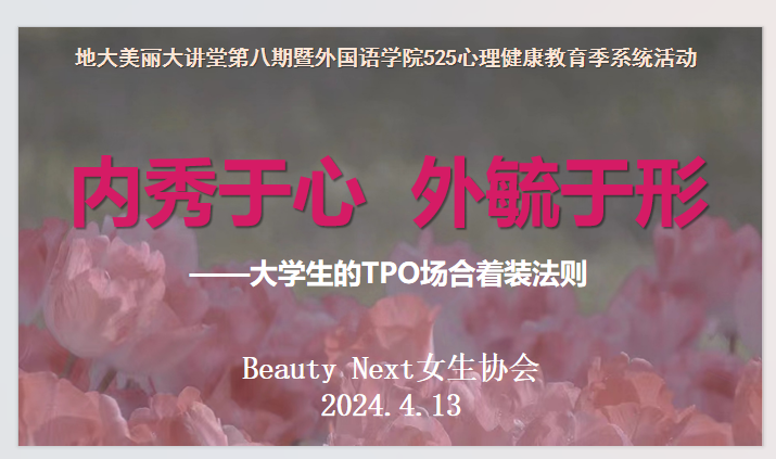 主办、Beauty Next女生协会承办的美丽大讲堂第八期“内秀于心 外毓于形”于4月12日下午15:00,在北一楼报告厅正式开讲。本次活动特邀资深专家——美丽大讲堂第八期特邀嘉宾王萍老师讲授大学生TPO场合着装法则,Beauty Next女生协会及污污漫画