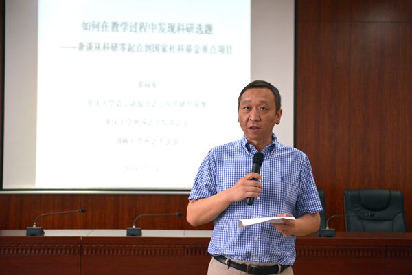 师生对学术研究有兴趣有热情,也都愿意投入时间和精力,但需要高瞻远瞩、紧跟时代,走在学术前沿的专家学者引领扶持。接着,他向与会师生简要介绍了四位主讲嘉宾的讲座内容和意义,相信学养深厚、著述等身的四位专家型学者必将引领在座师生将教学与科研有机结合,使大家少一分焦虑和迷茫,多一分信心和勇气。他也希望大家能够从四位专家的讲座中吸取新知识,掌握新方法,亦能有“沉舟侧畔千帆过,病树前头万木春”之精神,从而在科研上,“长风破浪会有时,直挂云帆济沧海”。