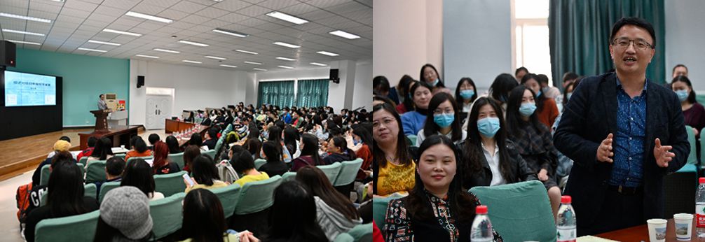 全体教师和研究生同学到场聆听。北一楼报告厅济济一堂、座无虚席。