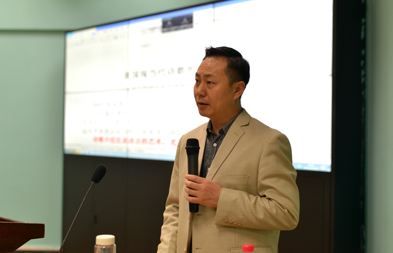 邀请,华中师范大学博士生导师罗良功教授以“美国现当代诗歌的视觉美学”为题开展了讲