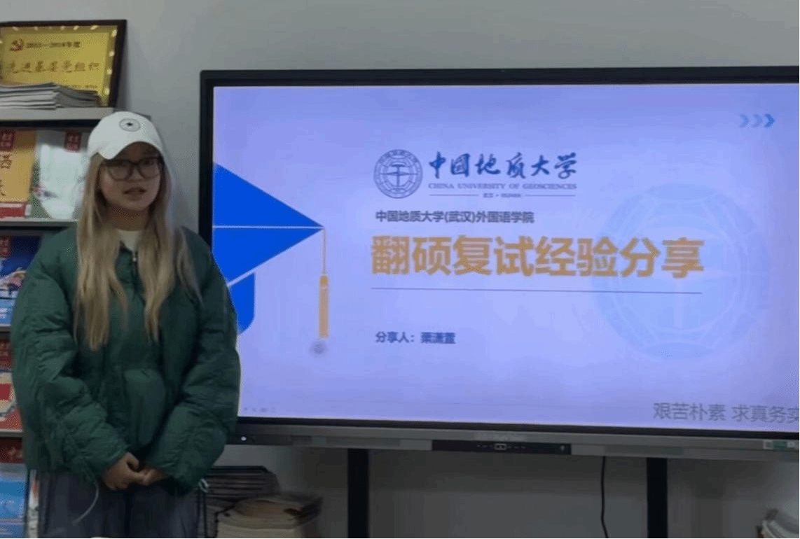 2024级翻硕栗潇萱从个人情况出发,强调了复试的重要性,而后自笔试、面试、复试体验及导师四个方面进行讲解,并针对面试的自我介绍、视译、听译和热点问答(或即兴演讲)等环节分享自己的经验和方法。