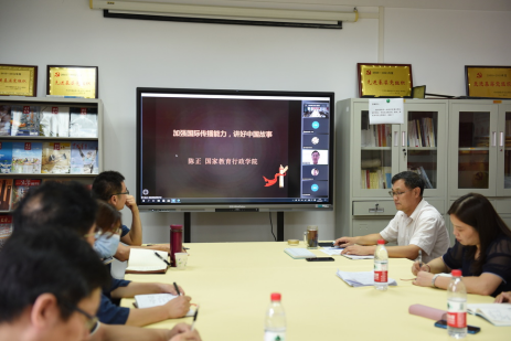 教育领导和管理国际比较研究中心主任陈正副教授在线作《加强国际传播能力 讲好中国故事》的报告。报告会线上线下同步进行,污污漫画