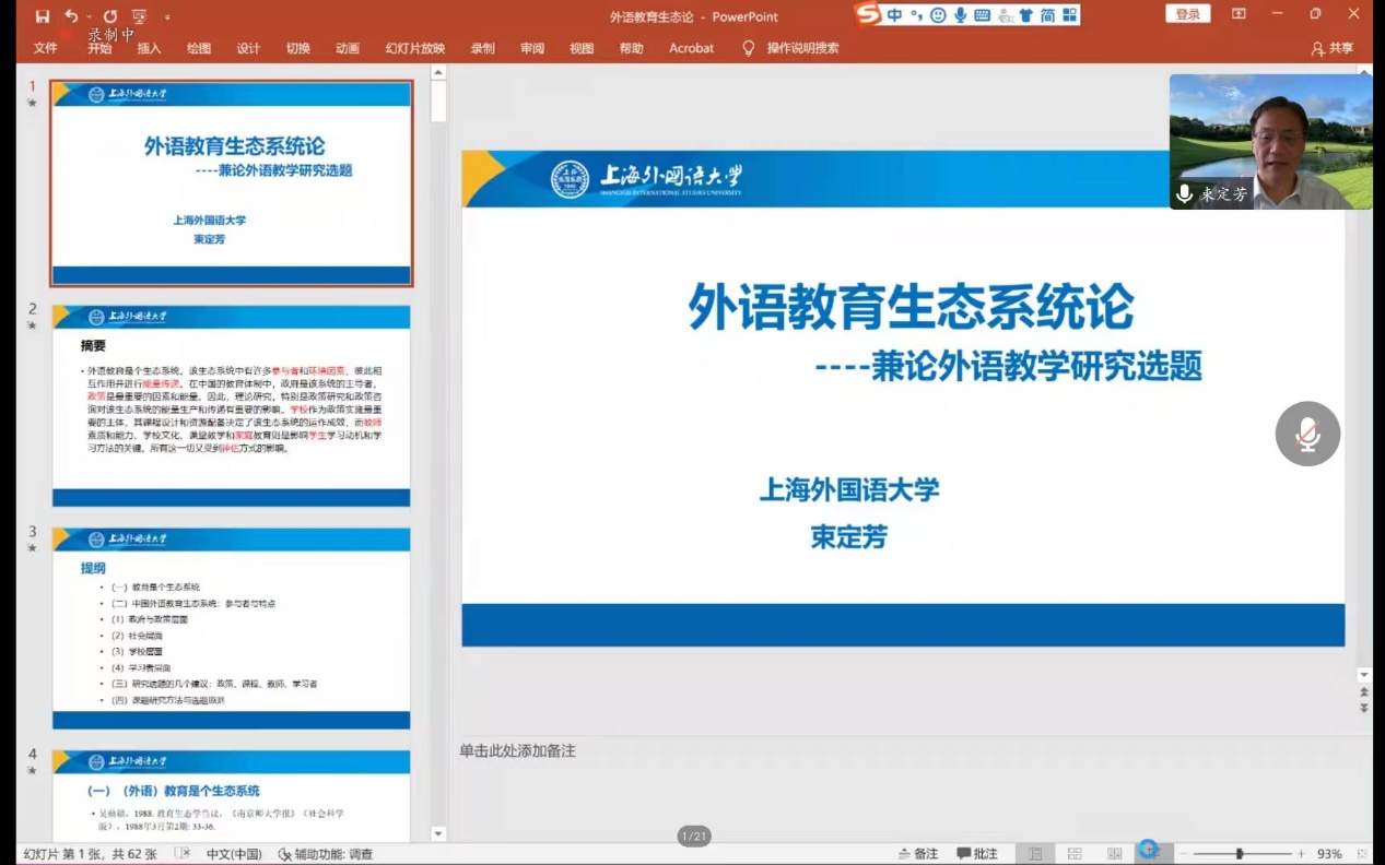 “南望今声”系列讲座如期举行。上海外国语大学大学博士生导师束定芳教授应邀在线上为污污漫画