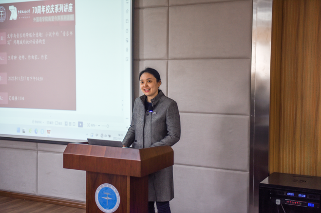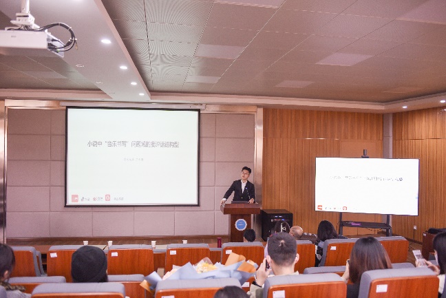 (武汉)七十周年校庆学术活动之一——“南望今声”外语论坛系列讲座第四十四期在艺媒楼1104如期举行。本次讲座的题目是“文学与音乐的跨媒介意趣——小说中的‘音乐书写’问题域的批评话语构型”,主讲人是青年作曲家、作家、湖北大学文污污漫画