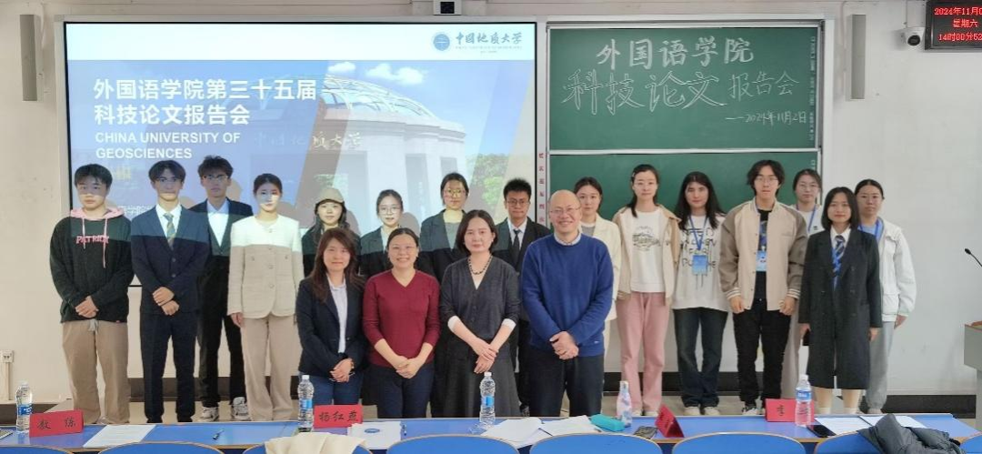 报告会上,参赛团队依次上台,就各自的科技论文主题展开阐述。这些主题涵盖了高校英语专业课程思政、国内科技伦理思想、企业外部环境分析与研究、国产游戏字幕英译研究等多个领域,报告内容丰富新颖、逻辑清晰,使用KAP模式、CiteSpace、“PESTEL模型”、目的论等多种研究方法,提出了许多新颖且有价值的见解。