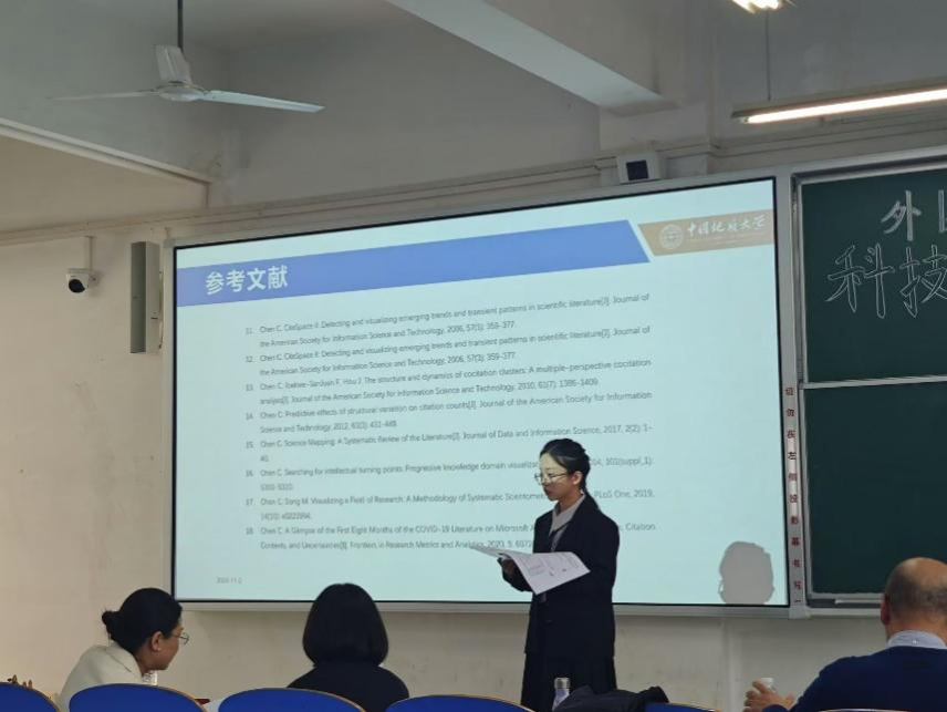 从容应队汇报人刘诗琪聚焦于“国内科技伦理思想研究热点与趋势”这一主题,巧妙地运用 CiteSpace 这一分析工具所生成的知识图谱,展开了深入且全面的剖析。在汇报过程中,她通过一系列来源广泛且详实的数据,有力地支撑了她的论述。同时,她还列举了诸多具有代表性的案例,从不同角度充分论证了其观点,让评委老师与同学们能够清晰地感受到这一研究领域的深刻内涵与发展走向。
