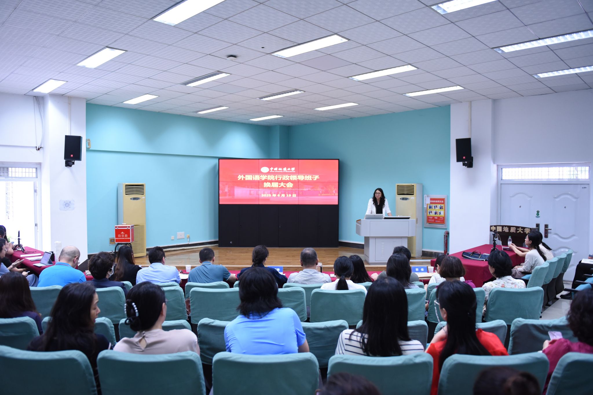 行政领导班子换届大会在北一楼报告厅召开。正处级专职组织员蒋怀柳,党委组织部干部科郭倩,污污漫画