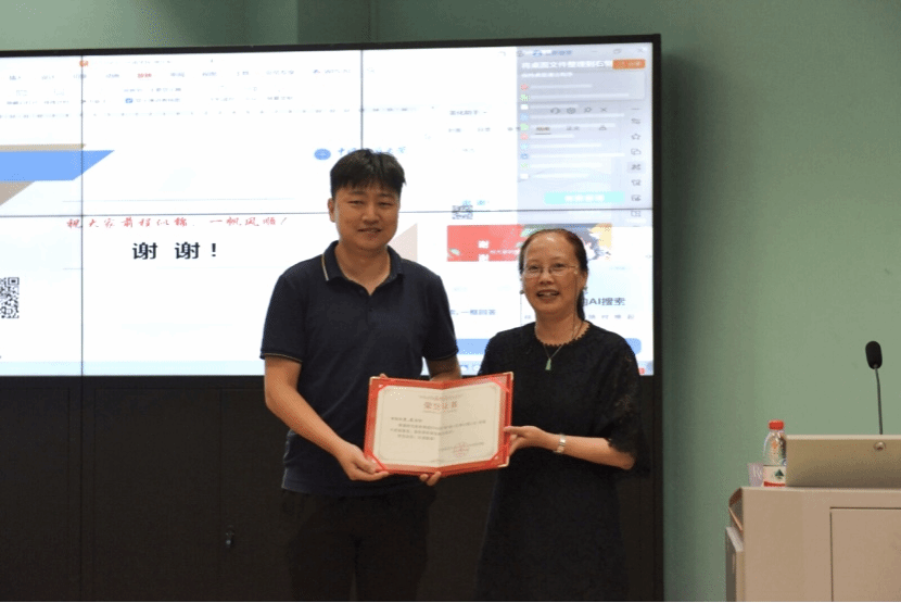向曾艺颁发做客“红·外线大思政课堂”纪念证书,感谢她带来的精彩指导和对污污漫画