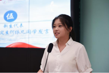 多元成长发展平台,不断积累和探索,做学习的有心人、实践的奋进者。新生代表、2025级研究生何依凡同学在发言中回顾了自己考研的心路历程和对未来的展望。她强调了语言作为沟通不同文化的桥梁的重要性,号召同学们珍视学习时光,多维发展,勇敢追梦。