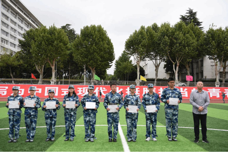 张峻峰为在训练中刻苦努力、表现优异的九位“优秀学员”尹政昱、谢子轩、田辉军、唐小雅、赵冰清、徐羽桐、蔡锦欣、王艺儒、李宇珂等颁发荣誉证书,勉励他们将军训中养成的优良作风带入今后的学习生活中,再接再厉,争创佳绩。
