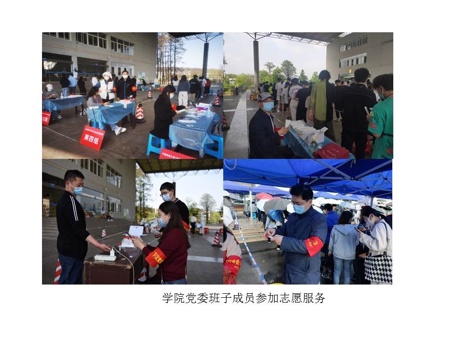 党委积极响应学校党委号召,组织教工党员参加疫情防控,党员干部带头,党员们积极行动,踊跃报名,发挥党员先锋模范作用,为学校筑牢校园平安防线。截至4月24日,共计100余人次参加核酸检测等志愿服务,累计服务时长达350余小时。其中孙来麟、李孝奎、周艳、俞仑燕、戴薇、董成见、宋干锋、王国念、刘敏、赵英科、张莉等同志多次参加校内疫情防控志愿者工作,为广大师生做出表率。