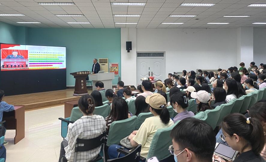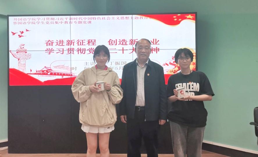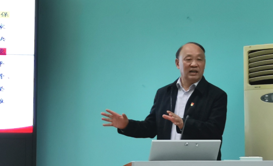 关心下一代工作委员会副主任、“学习贯彻党的二十大精神银龄宣讲团”成员、原学校党委副书记丁振国教授应邀担任本次党课主讲人,院党委书记刘世勇、副书记胡文勤、学生党建辅导员李海涵、全体学生党员和入党积极分子参与此次活动,活动由胡文勤主持。
