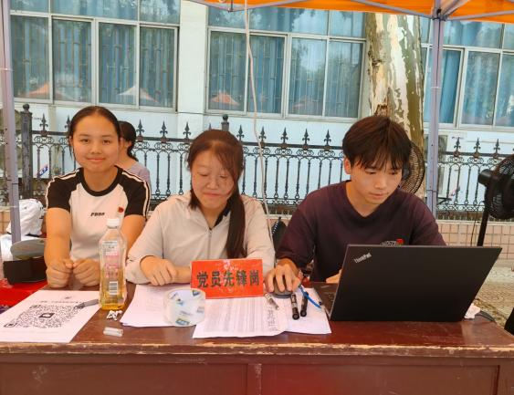 党建办联合各学生党支部组建党员先锋志愿队伍,设置党员先锋岗,组织党员同志们亮身份、树形象、争先锋、作表率,在迎新工作过程中为新生学子上好入党启蒙第一课。